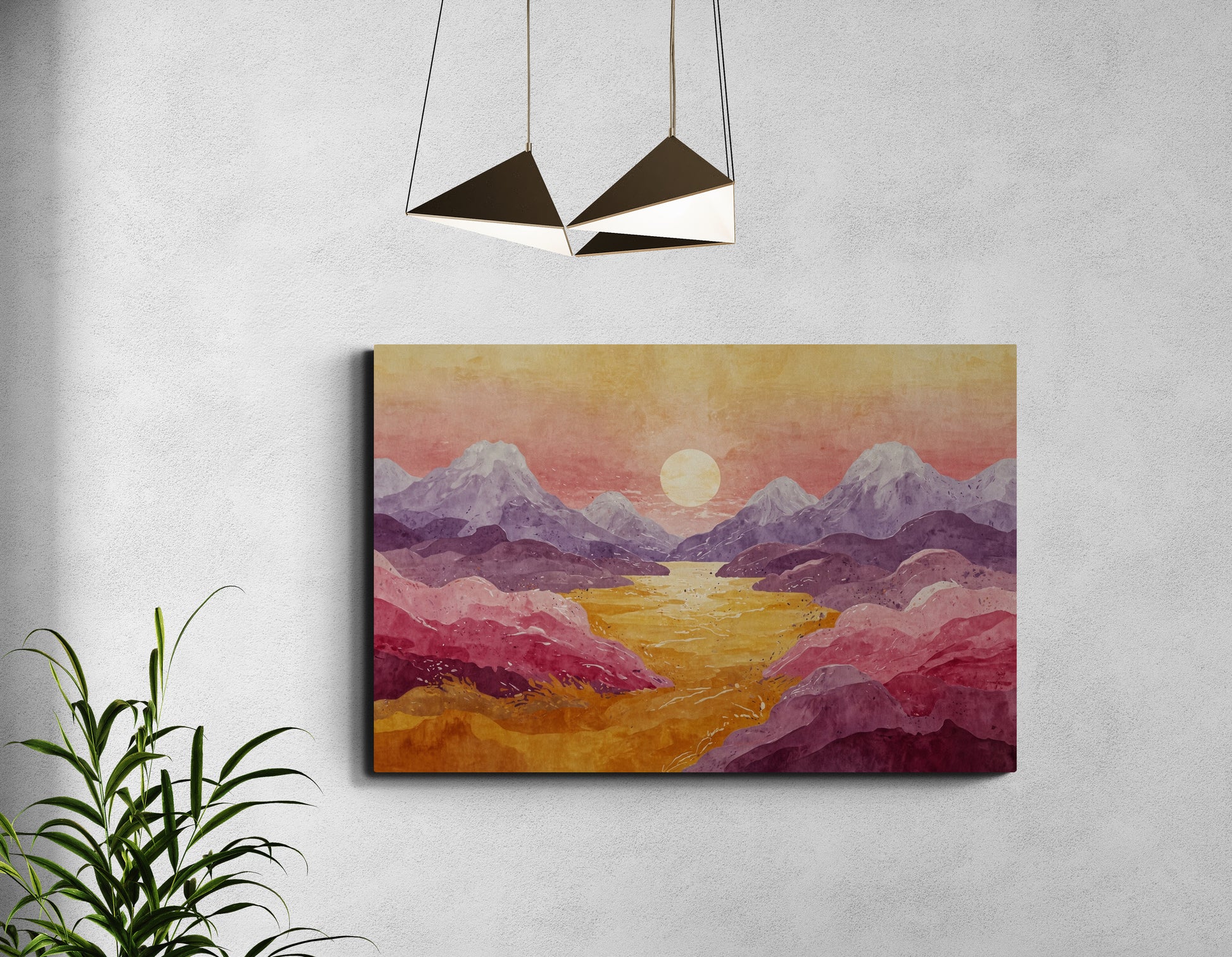 Velvet Horizon is an elegant abstract oil painting print that captures a dreamy sunset with soft purples, pinks, and golden hues. Flowing sculptural forms suggest drapery in motion, creating a luxurious, calming effect - ideal for modern and minimalist spaces.